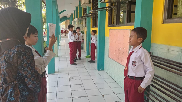 Murid-murid beranjak dari kelas ke halaman sekolah. Secara berpasangan, mereka bergantian mengambil foto diri dengan berbagai gaya dan video portrait berdurasi satu menit sesuai tema.
